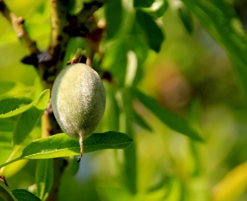 Tarım ve Orman Bakanlığı Tarımsal Araştırmalar ve Politikalar Genel Müdürlüğüne (TAGEM) bağlı enstitüdeki bahçede geçen ay çiçek açan badem ağaçları. meyve vermeye başladı.