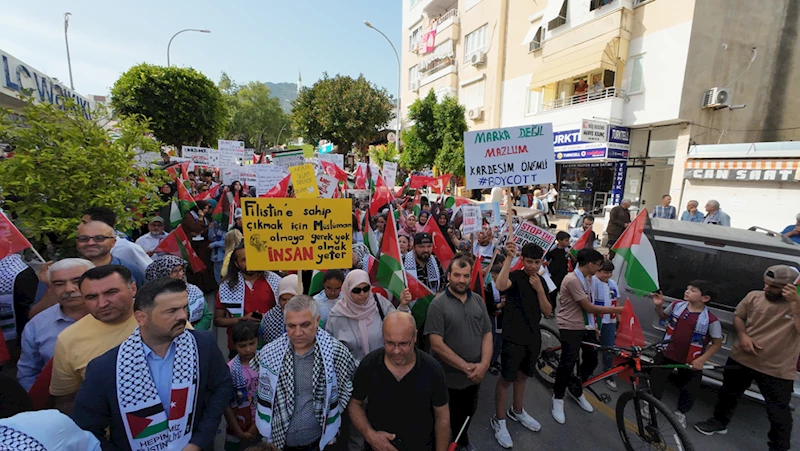 MERSİN - Mersin'in Anamur ilçesinde Filistin'e destek için gerçekleştirilen yürüyüşte İsrail'in saldırıları protesto edildi.