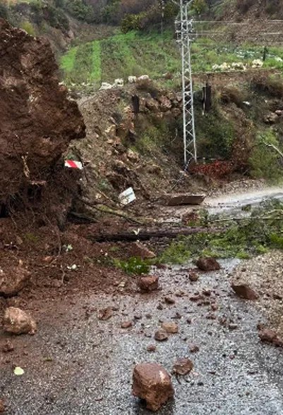 Yola düşen toprak ve kaya parçalarından dolayı yol ulaşıma kapandı.
