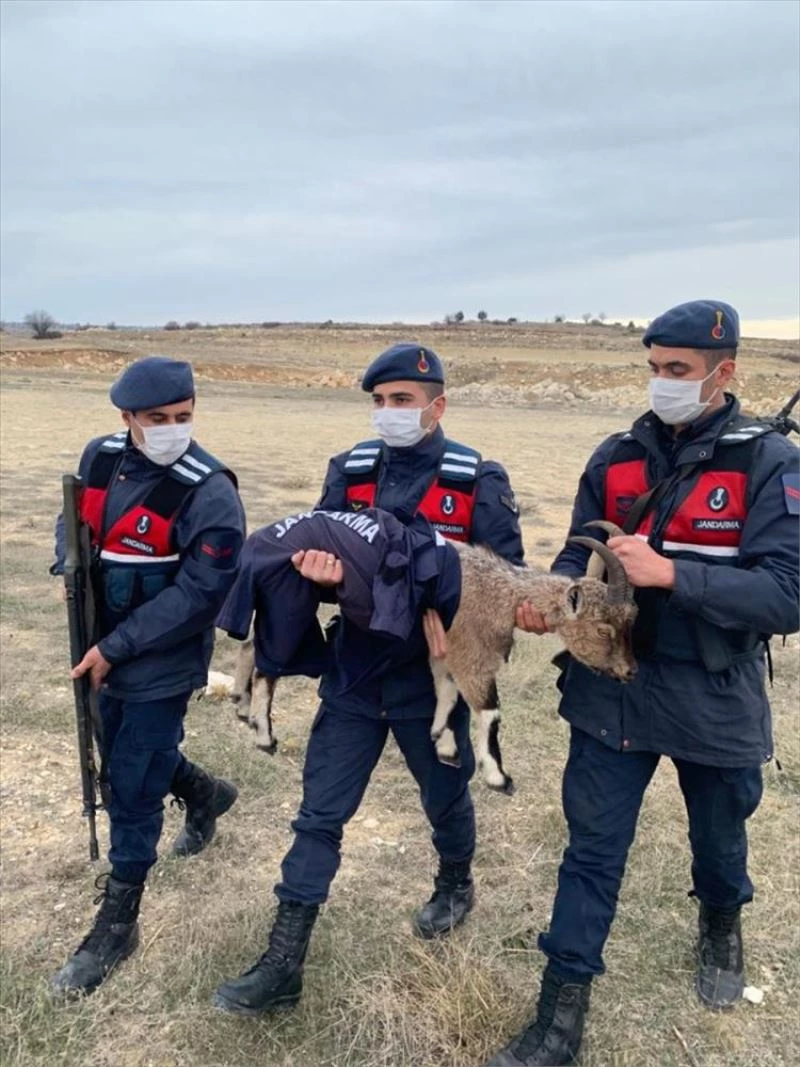 İlçe Jandarma Komutanlığı ekipleri, Kocaoluk Mahallesi Gökler Deresi kenarında bitkin ve ıslak halde bir yaban keçisi yavrusu buldu.