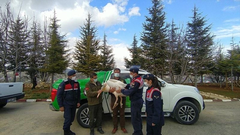 İl Jandarma Komutanlığı Çevre, Doğa ve Hayvanları Koruma ekipleri, muayene ettikleri pelikanın kanadının kırık olduğunu belirledi.