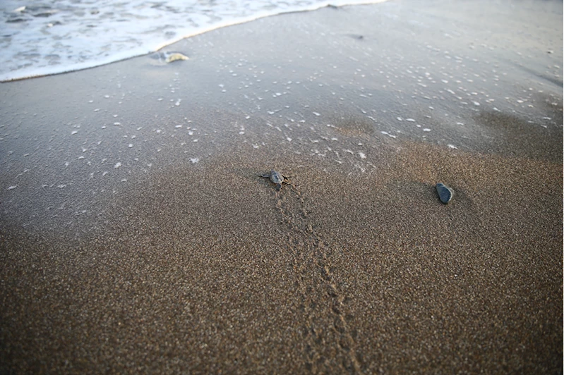MERSİN - Mersin'in Mezitli ilçesinde yumurtalarından çıkan yeşil deniz kaplumbağası yavruları denizle buluştu.