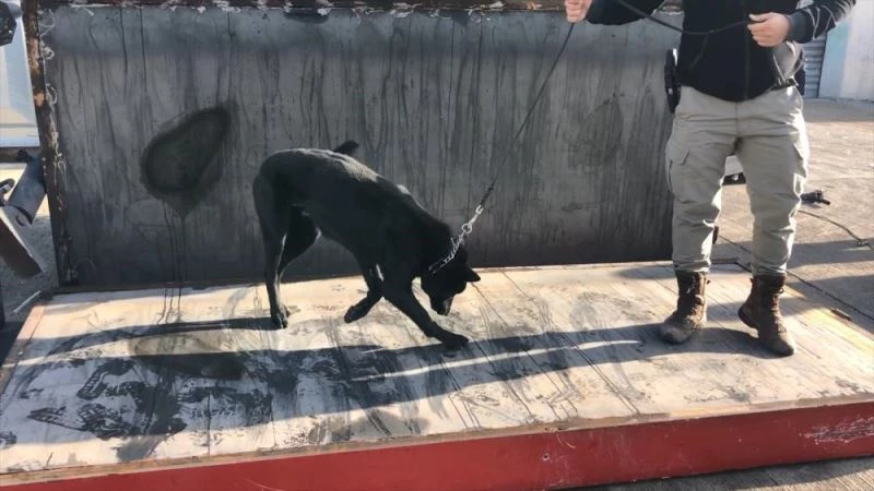 Ekipler, bir iş yerinin önündeki kömür kazanında narkotik dedektör köpeğinin de destek verdiği arama yaptı.
