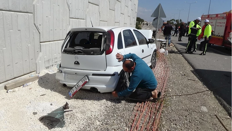 Kazanın etkisiyle savrulan araçlar, bölgede yapımına devam edilen Çeşmeli-Erdemli-Silifke-Taşucu Otoyol Projesi'nin köprü duvarına çarparak durabildi.