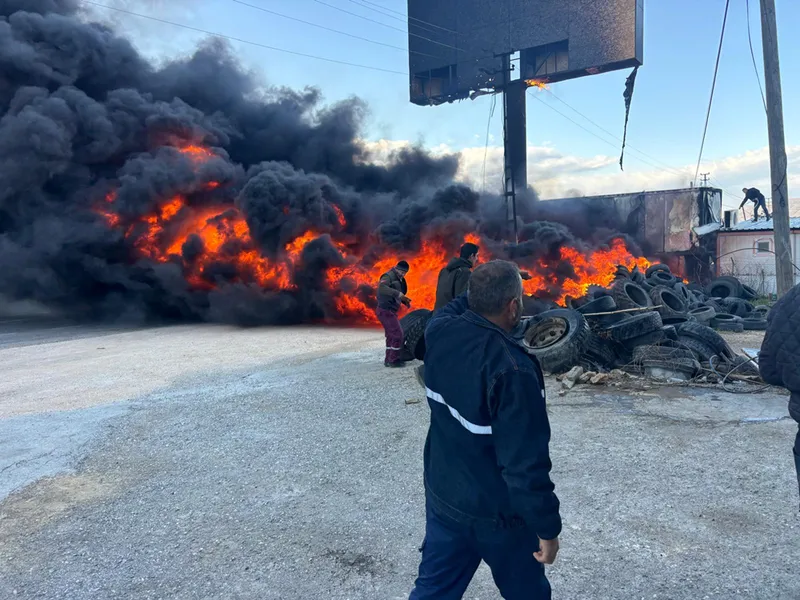 Alev alan lastiklerden yükselen duman nedeniyle D-400 kara yolunda trafik aksadı.