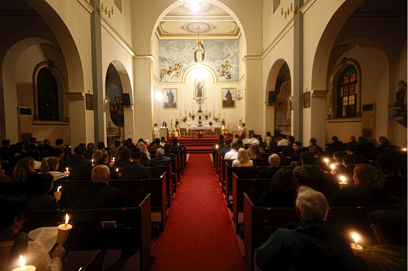 Ayinde ilahiler ve İncil'den bölümler okuyan vatandaşlar, mum yakıp dua etti.