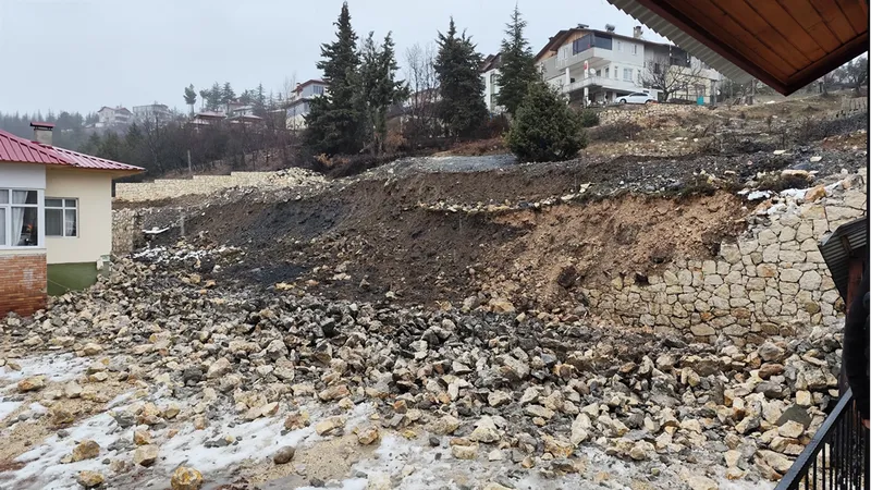 Yağış nedeniyle Kale Mahallesi'ndeki bir evin istinat duvarı yıkıldı.