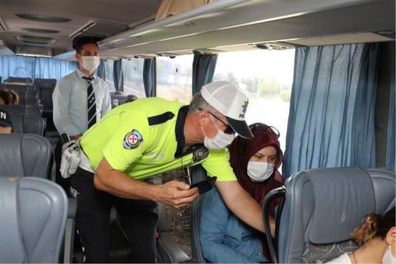 Trafik ekipleri, denetim yaptıkları araçlarda, otobüs personeli ve yolculara sosyal mesafe ve maske takmaları konusunda da uyarılarda bulundular.