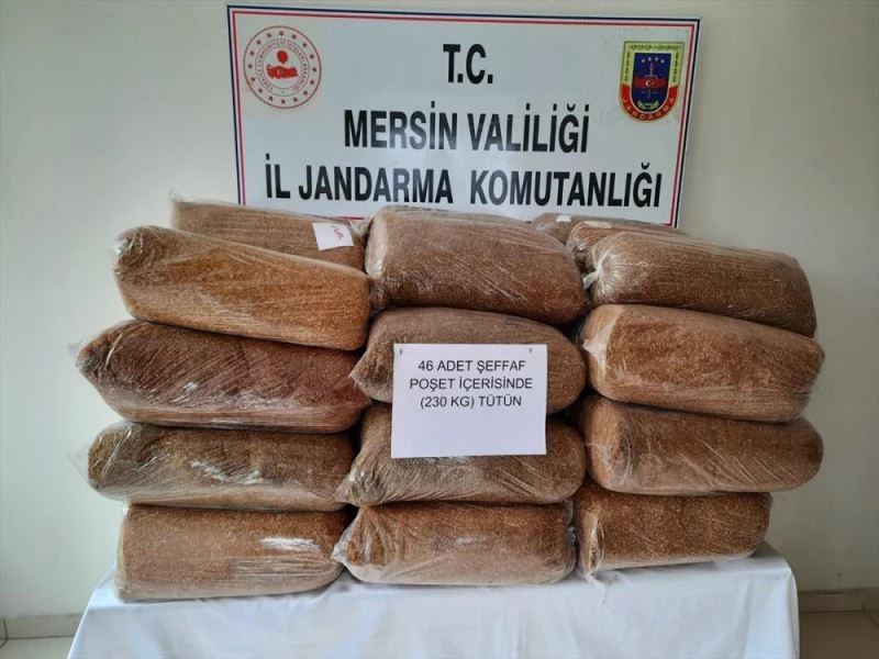 MERSİN (AA) - Mersin'in Tarsus ilçesinde, jandarma ekiplerince şüphe üzerine aranan otomobilde 230 kilogram kaçak tütün ele geçirildi.