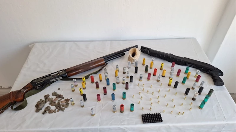Söz konusu adresteki aramalarda tarihi eser niteliği taşıdığı değerlendirilen 83 obje, 1 tarih taş, 2 ruhsatsız av tüfeği, 94 fişek, 1,5 gram uyuşturucu ele geçirildi.