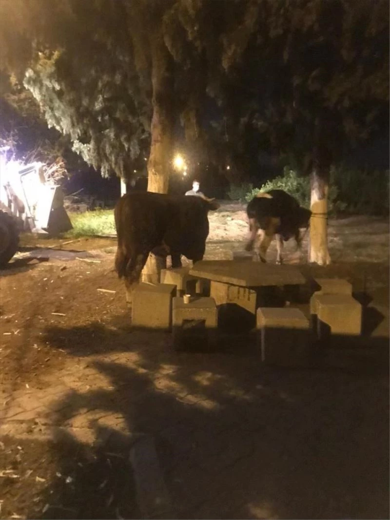 Kurtarılan 2 büyükbaş hayvan, Tarsus Belediyesi mezbahasına götürüldü.