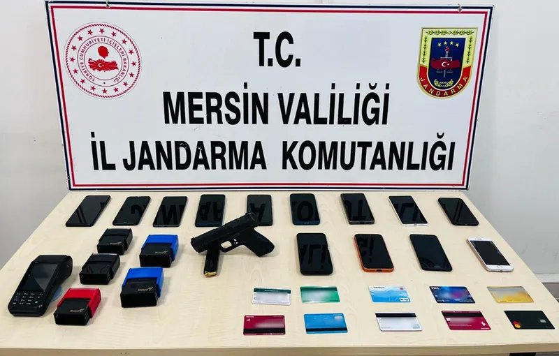 Aramalarda, 14 cep telefonu, 14 SIM kart, 2 SIM kart bloğu, tabanca, 10 kaşe ve 10 banka kartı ele geçirildi.