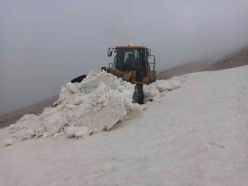 Yaz aylarının aşırı sıcaklarından etkilenen hayvanlarını serin noktalara götürmek için yolculuğa başlayan Yörüklerin, sıkıntı yaşamaması için Büyükşehir Belediyesi Muhtarlık İşleri Dairesi ile Yol Yapım Bakım ve Onarım Dairesi ekipleri, Çamlıyayla’nın 3000 metreye yakın noktalarında kar küreme ve yol temizlik çalışması gerçekleştiriyor.