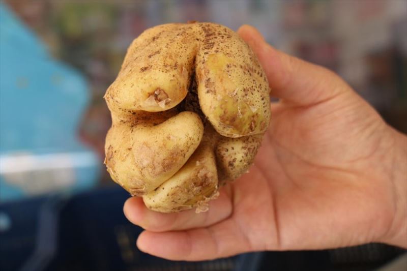 MERSİN (AA) - Mersin'in Erdemli ilçesinde, bir bakkal işletmecisinin sebze halinden aldığı patates çuvalı içinden çıkan yumruk görünümlü patates görenleri şaşırtıyor.