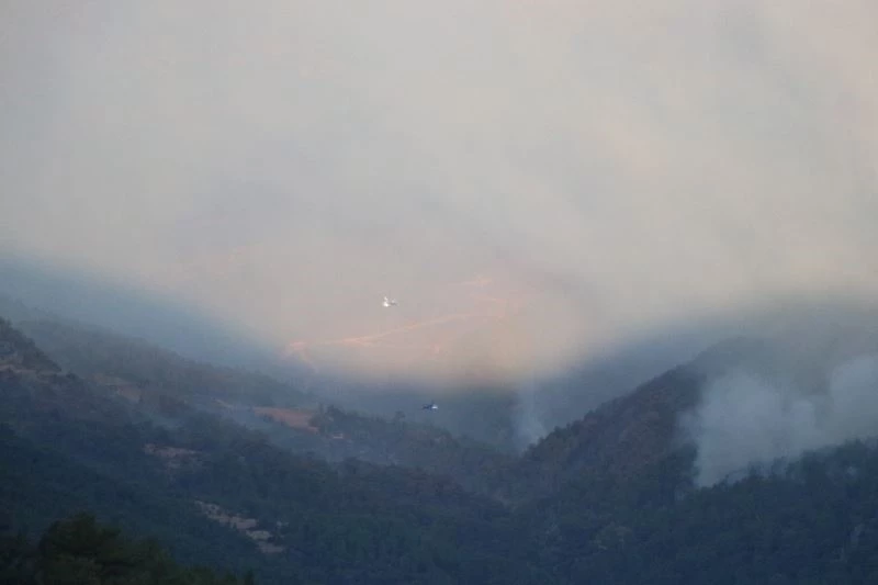 Mersin’in Aydıncık ilçesinde çıkan orman yangına, sabahın erken saatlerinde havadan da müdahale edilmeye başlandı.