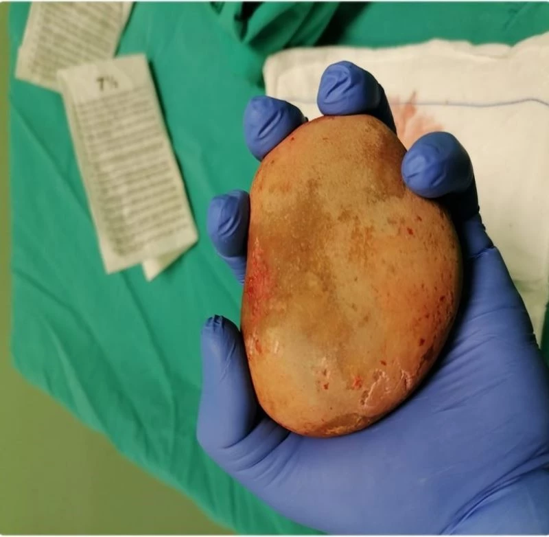 Literatürde bu boyda taş görülmesi çok nadir karşılanırken hastanın mesanesinden çıkan taş şaşkınlıkla karşılandı. Derhal ameliyata alınan hastanın mesanesindeki taş kapalı yöntemle çıkarılması mümkün olmadığından açık sistolitotomi ameliyatı yapıldı. Herkesi şaşkına çeviren büyük bir patates yumrusu şeklindeki taş başarılı şekilde alındı.