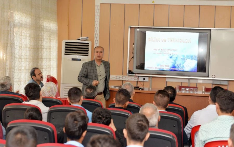 Osmaniye İl Milli Eğitim Müdürlüğü ve Korkut Ata Üniversitesi arasında imzalanan "Osmaniye Öğretmen Akademisi İl Projesi Meslek Liseleri Gelişim Çalışmaları" Mesleki ve Teknik Anadolu Lisesinde "Bilim ve Teknoloji" konulu eğitim semineri düzenlendi. Toplantı salonunda, OKÜ Mühendislik Fakültesi Dekan Yardımcısı Doç. Dr. Adnan Bozdoğan, öğretmen ve öğrencilerin katılımlarıyla gerçekleştirilen programa konuşmacı olarak Öğretim Üyesi Doç.Dr. Bülent Yanıktepe katıldı. Yanıktepe, teknolojinin bilim temelli adımlarını gösterirken, bilim ile bilim ürünlerinin ortaya çıkacağı ve patent sahibi olmanın ülke ekonomisine ve gelişimine ne derecede etki edeceğinin vurgusunu yaptı. Öğrencilere bilimin olmadığı yerde cehalet ve dedikodunun olacağını belirten Yanıktepe, her daim bilim temelli öğrenme becerileri geliştirecek arkadaşlar edinmeleri konusunda tavsiyelerde bulundu.