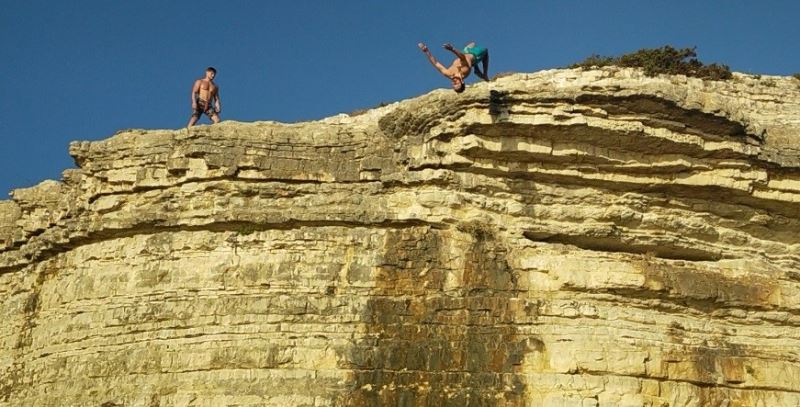 Metrelerce yükseklikteki kayalardan denize tehlikeli atlayış