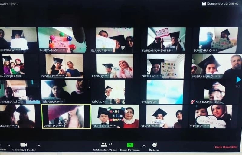 DÜZCE(İHA) – Korona virüs salgını nedeni ile okullarına gidemeyen öğrenciler mezuniyetlerini online olarak gerçekleştirdi. Düzce Hamidiye Şehit Özgür Işık İlkokulu 4. sınıf öğrencileri canlı yayında mezun oldu.