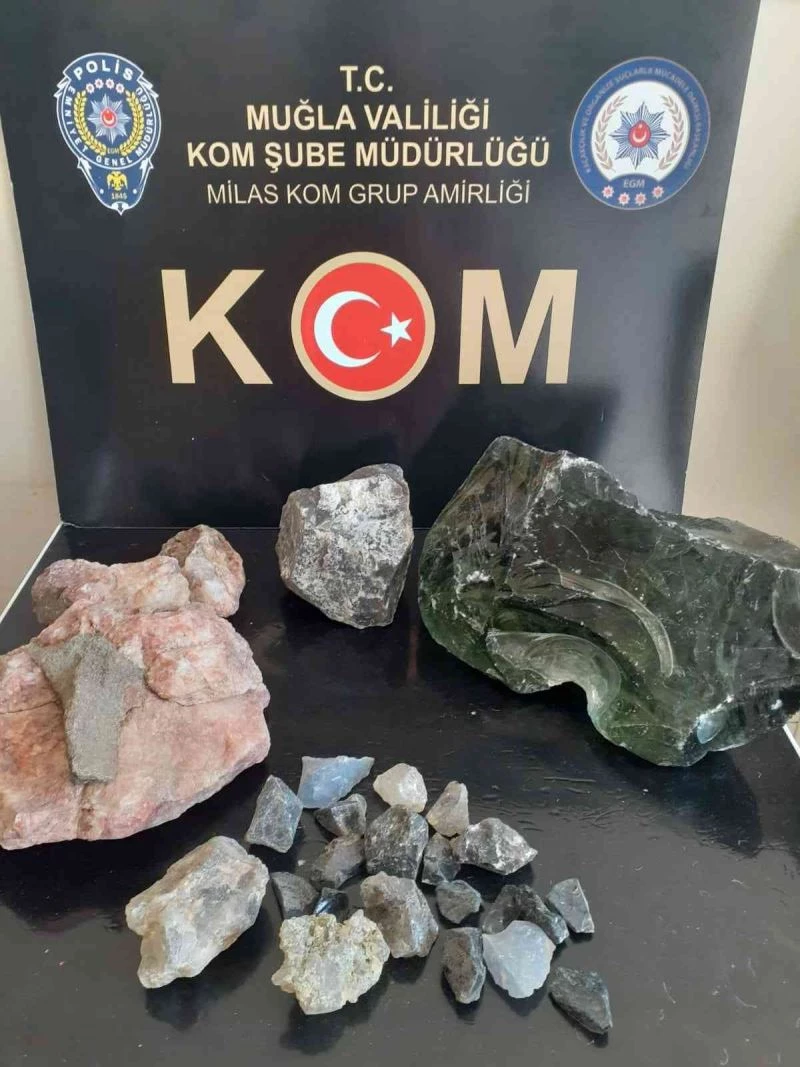 Edinilen bilgiye göre, Milas KOM Grup Amirliği ekipleri yapılan ihbar ile tespit edilen bir adrese operasyon düzenledi. Ekipler yapılan aramada çıkarılması izne tabi olan değerli taşlar statüsünde bulunan Diaspor ve benzeri değerli taşlar ele geçirildi. Olayla ilgili olarak İ.B. isimli şahıs hakkında adli işlem başlatıldı.
