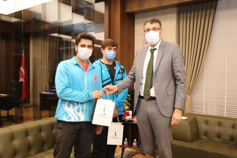 Türkiye Atletizm Federasyonu tarafından Mersin’de düzenlenen Seyfi Alanya Atmalar Şampiyonası ve Spor Toto U18 Kulüplerarası Atmalar Ligi 1. Kademe Yarışmalarında cirit branşında 67,76 metre atışla Türkiye şampiyonu olan Burak Demirkesen ile gülle atma branşında 18,31 metre atışıyla Türkiye üçüncüsü olan Melih Gökalp Vali Ali Çelik’i makamında ziyaret etti.
