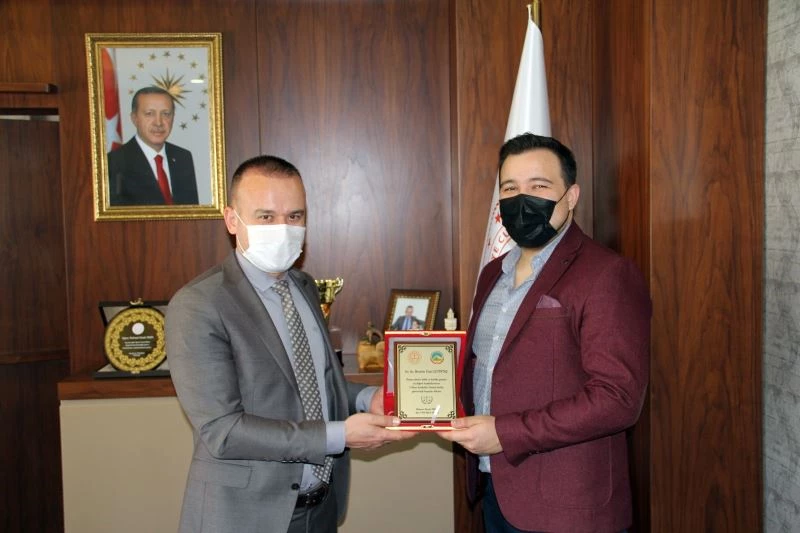 Milli Eğitim Müdürü Tekin, Çetintaş’a plaket takdim etti
