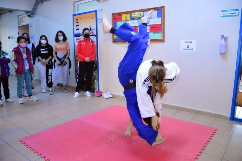 “Hayat Boyu Öğrenme Haftası” kapsamında Karasu Fatih Sultan Mehmet Ortaokulu’nda judo gösterisi düzenlendi. Gösteride hem ulusal hem de uluslararası müsabakalarda aldıkları dereceler ile Karasu’yu temsil eden Milli Judocu Irmak Kahveci ve Zeynep Serra Üstün, gösterilerini sundu.