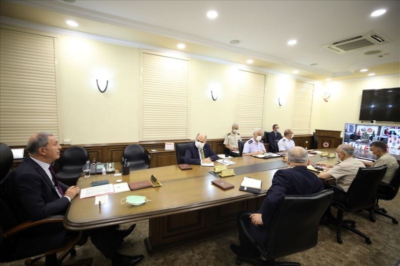 Milli Savunma Bakanı Hulusi Akar başkanlığında korona virüs ile mücadele, terörle mücadele, Doğu Akdeniz’deki gelişmeler başta olmak üzere konuların ele alındığı video telekonferans toplantısı gerçekleştirildi.