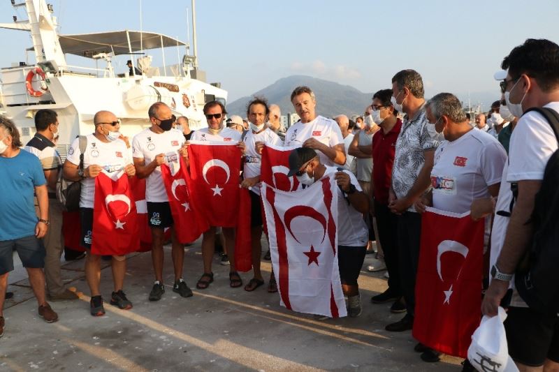 Bu tür organizasyonlara dev maraton dendiğin kaydeden Tüzmen, “Bunun dünyada örnekleri çok az. 6 kişiyle yaptığımız çalışmada herkes 1’er saat yüzecek. Toplamda herhalde hava şartlarına göre değişebilir ama 8 saate yakın bir yüzüş yapacağız. 90 kilometre olarak direk gördüğümüz yer 110-120 kilometreye çıkabilir. Çünkü akıntılardan dolayı yönler değişebilir. Bugün burada denizde hiçbir petrol veya doğalgaz platformu göremiyorsunuz. Ama emin olun ki ilerde şunu görecek ki bizler 1,5 milyar varil petrol rezervlerini ve 3 trilyon küp doğalgaz rezervlerinin üzerinde yüzeceğiz. Yani bu korkunç bir zenginlik. Bu zenginlik Türkiye’ye 570 yıl yetebilecek bir zenginlik. Akdeniz aslında bizim gölümüz. Bizim gölümüzde biz karşı tarafta bizi bekleyen KKTC’ye gideceğiz. Burada şehitlerimizi, gazilerimizi yad edeceğiz” diye konuştu.