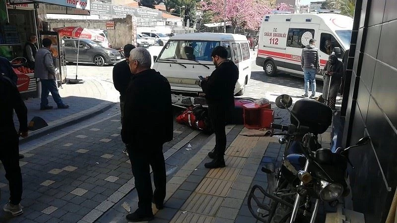 Minibüsün altına giren motosikletli kurye hastaneye kaldırıldı