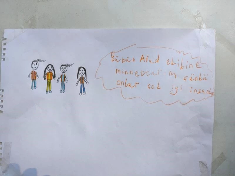 İzmir depreminden sonra halen çadır kentte yaşayan 7 yaşındaki minik kız, AFAD ekibine yazdığı not ve çizdiği resimle teşekkür etti.