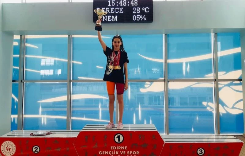 Edirne Okul sporları Yıldızlar İl Müsabakaları’na katılan Alper Yazoğlu Ortaokulu öğrencisi ve Edirne Yüzme Eğitim Merkezi (EYEM) Spor Kulübü sporcusu Beyza Işık, gösterdiği başarı ile 7 birincilik ve altın madalya kazandı.