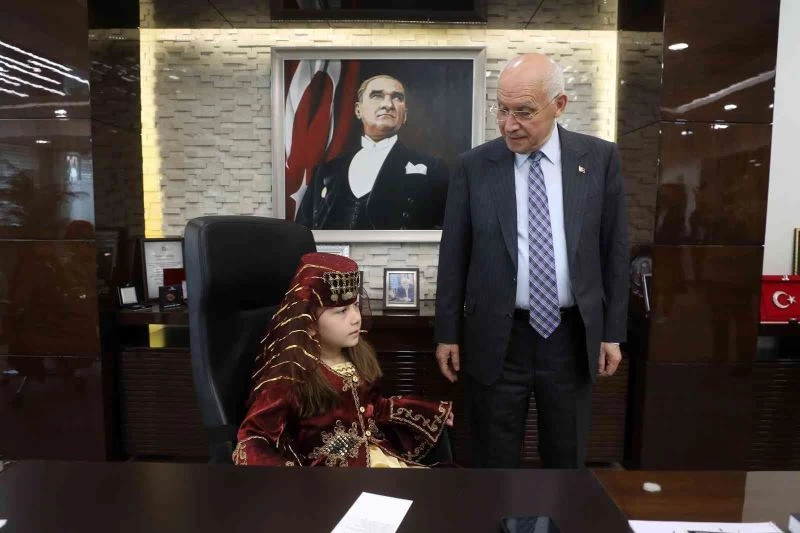 23 Nisan Ulusal Egemenlik ve Çocuk Bayramı dolayısıyla 23 minik öğrenci, Başkan Fethi Yaşar’ı makamında ziyaret etti.