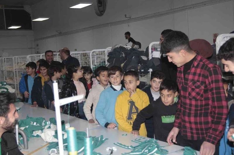 atölyeyi, fabrikayı gezdiler. Çocuklar, birinci aşamanın kumaştan başladığını, daha sonra dikimden ütüye kadar her şeyi gördüler. Çocuklar gayet mutlu oldu. Biz de onları burada ağırlamaktan çok mutluluk duyduk. Geldikleri için teşekkür ederiz” ifadelerini kullandı.