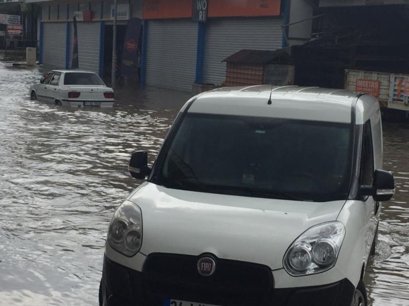 Bilecik’te misket büyüklüğünde yağan dolu hayatı olumsuz etkilerken, aracıyla suda mahsur kalan sürücü suların çekilmesini bekledi.