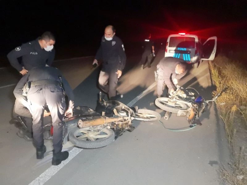 Olay, Aksaray’ın merkeze bağlı Akin Köy Yolunda yaşandı. Edinilen bilgiye göre, A.G. (17) ve E.A. (16) isimli 2 genç, Minarecik ve Hasas Mahallesinden 2 motosikleti kilitlerini kesmek sureti ile çaldı. 2 şüpheli çalıştırabildikleri motorun arkasına diğer motoru da iple birbirine bağlayıp çekmek sureti ile Akin Köyüne doğru yola çıktı. Bu sırada devriye atan İl Emniyet Müdürlüğü Hasandağı Polis Merkezi ekipleri 2 genci Akin Köy Yolunda motosikletle giderken gördü. Bunun üzerine şahısları takibe alan ekip bir süre sonra şahısları durdurmak istedi. Dur ihtarının ardından yakalanacaklarını anlayan 2 genç motorları atarak ormanlık alana kaçmaya başladı. Polis ve şüpheliler arasında yaşanan yaya kovalamaca sonucu A.G. isimli şüpheli yakalanarak gözaltına alınırken, diğer şüpheli kaçmayı başardı. Gözaltına alınan A.G. Aksaray Üniversitesi Eğitim ve Araştırma Hastanesi Acil Servisinde sağlık kontrolünden geçirilerek emniyete götürülürken, maskesi olmayan gence polis memuru maske taktı. Polis ekipleri kaçan diğer şüphelinin peşine düştü. Yapılan inceleme ve araştırmalarda motorların ikisinin de yeni çalındığı tespit edilirken, sahipleri belirlenen motorlar polis ekiplerince sahiplerine teslim edildi.