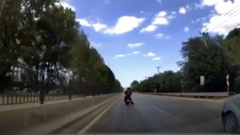 Sabah saatlerinde seyir halinde giden motosiklet sürücüsü, yerdeki çöpü gördü. Çöpü almak için ışıklarda bekleyen otomobillerden önce davranarak sağ taraftan sol tarafa geçen sürücü, daha sonra ayağı ile yerdeki çöpü alarak kucağına getirdi. O anlar başka bir sürücünün kamerasına anbean yansıdı.