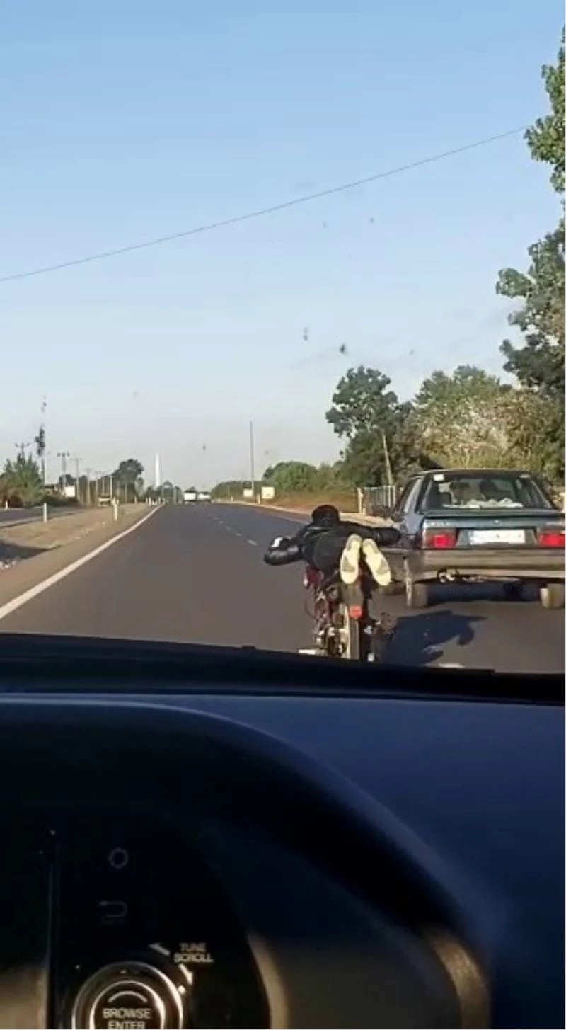 Motosikletini yatarak kullanan sürücü ölüme meydan okudu