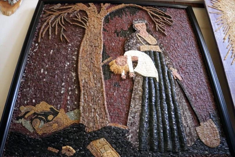 Hüzmeli, AA muhabirine yaptigi açiklamada, amatör olarak basladigi isini 12 yildir profesyonel olarak yaptigini belirterek, "En küçük anahtarlik ve süs esyalarindan duvar mozaiklerine kadar çesitli mozaik eserler yapiyorum. Eserlerim begeniliyor. Isimi büyük bir askla yapiyorum." dedi.