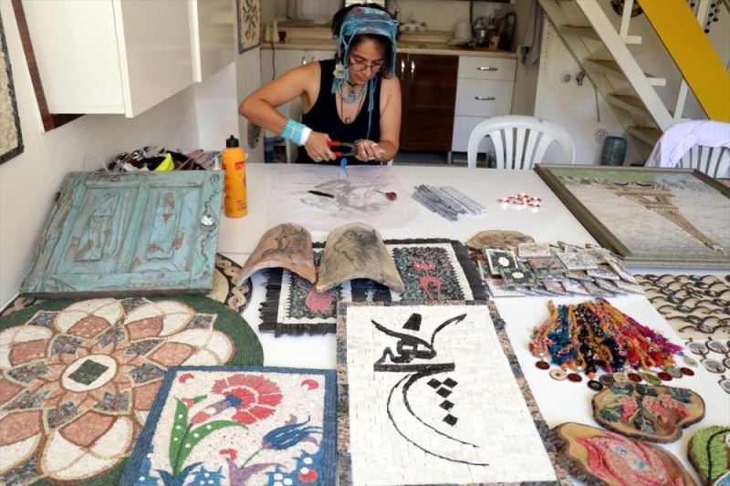 Tarihi Eski Antakya Evleri'nin bulundugu Affan Mahallesi'ndeki atölyede, mozaikten süs esyalari, anahtarlik, duvar kaplama ve tablolar yapan Hüzmeli, 12 yil önce basladigi sanata yenilik katmak adina farkli bir yöntem gelistirdi.