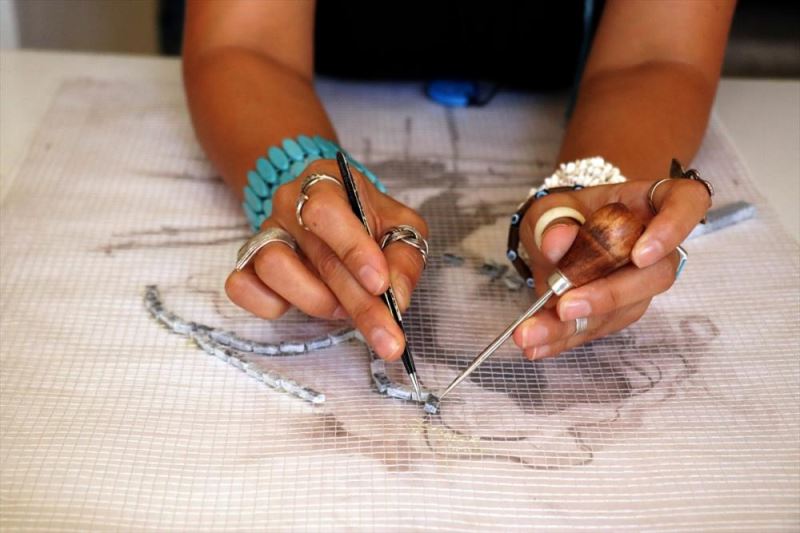 HATAY (AA) - ERDAL TÜRKOGLU - Hatay'da yasayan mozaik sanatçisi Menel Hüzmeli, gelistirdigi "3 boyutlu" yöntemle farkli görünüme sahip eserler yapiyor.