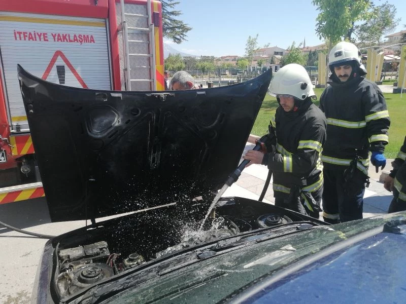Olay, Ereğli Kapı Mahallesi Bediüzzaman Bulvarı’nda meydana geldi. Edinilen bilgiye göre, araç muayene istasyonunda aracını muayeneden geçirdikten sonra evine giden Bayram Güneş (39) idaresindeki 68 FN 975 plakalı Renault marka otomobil seyir halindeyken motor kısmından duman yükseldi. Aracını yol kenarına çeken sürücü araçtan inerek elektrik arızası veren motorun yandığını fark etti. Çevreden yardım isteyen sürücünün imdadına yoldaki diğer sürücüler yetişti. Araçlarındaki yangın tüpleriyle sürücüye yardım eden vatandaşlar yangını söndürdü. Atatürk Bulvarı ile Bediüzzaman Bulvarı’nın kesiştiği kavşakta uygulama yapan polis ekipleri de vatandaşların telaşını fark ederek olay yerine geldi. Polis ekipleri tarafından olay yerine çağırılan Aksaray Belediyesi İtfaiye Müdürlüğü ekiplerince söndürülen otomobilin motor kısmında soğutma çalışması yaptı.