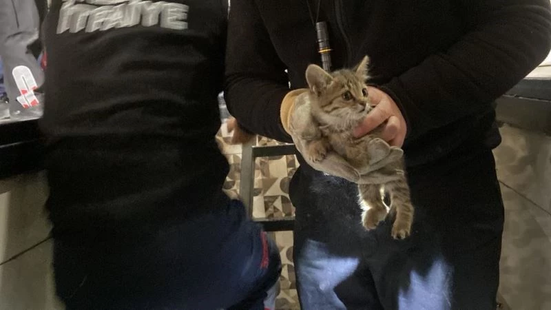 Erzincan’da bir otomobilin tampon kısmına giren yavru kedi itfaiye ekiplerinin çalışması sonucu kurtarıldı.