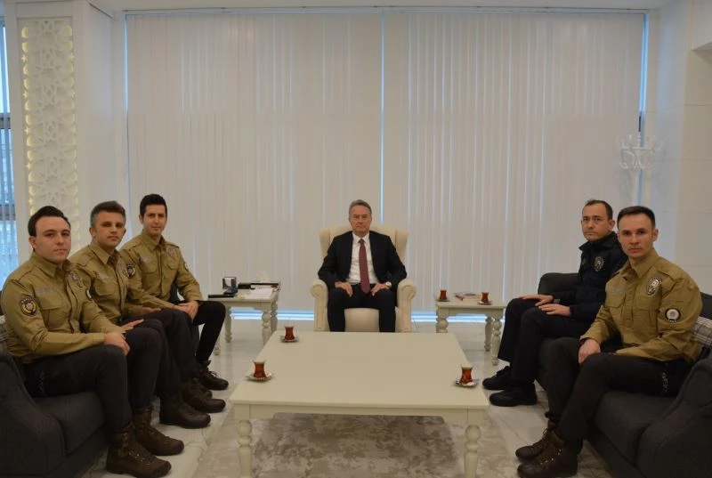 Edirne İl Emniyet Müdürü Mustafa Alçalar, gece kartalları olarak anılan çarşı ve mahalle bekçilerini yaptıkları başarılı çalışmalardan dolayı makamında kabul ederek tebrik etti.
