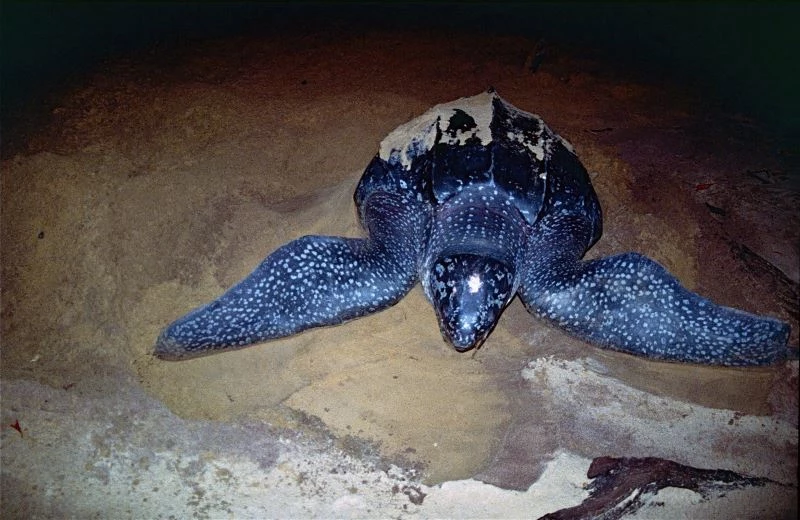 Muğla’nın Göcek koylarında yat kaptanı tarafından Türkiye kıyılarında ilk defa görüntülenen deri sırtlı deniz kaplumbağası şaşkınlığa neden oldu.