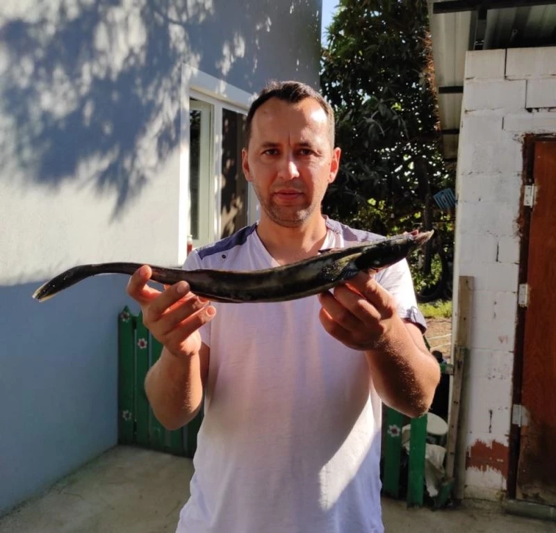 Demirtaş, “Sabah erken saatte Ekincik sahiline gittim. Oltayı attıktan sonra ilk takılan balık bu oldu. Çekince kovaya yapıştı. Zehirli olabilir düşüncesiyle elimle dokunmadan kovadan güçlükle ayırdım.” dedi.