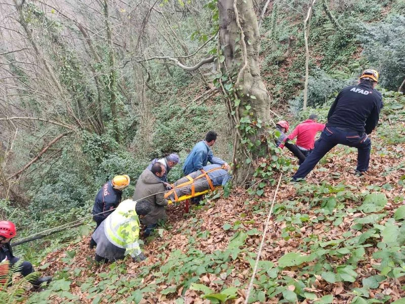 Zonguldak’ın Ereğli ilçesine bağlı Bayat Köyü Muhtarı Ahmet Eğrilmez, 100 metreden uçuruma düşerek yaralandı.