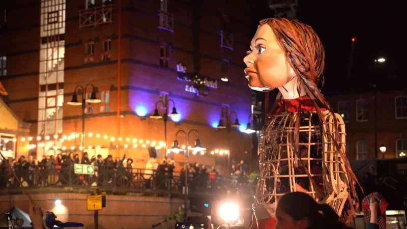 Mülteci sorunlarına dikkat çekmeyi amaçlayan çocuk kuklası Emel, 8 bin kilometrelik yolculuğunun son durağı olan Manchester’a ulaştı.
