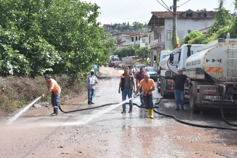 Gemlik Belediyesi, Muratoba’da yaşanan çamur seline anında müdahale etti.