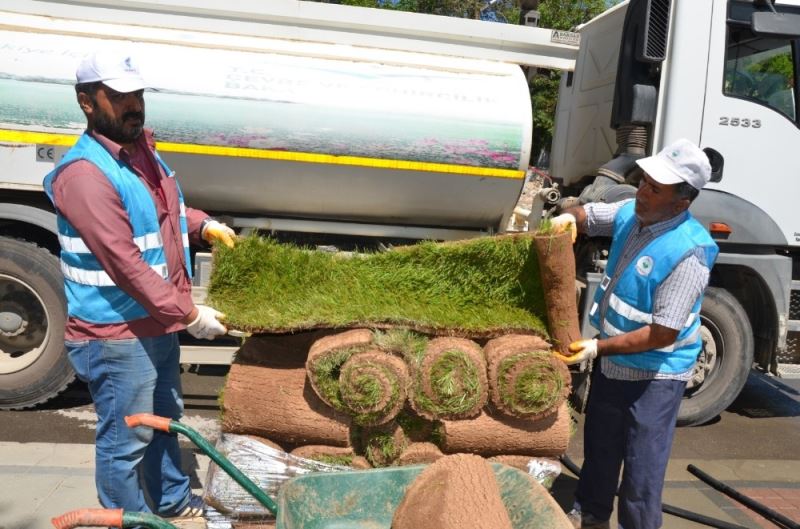 Muş Belediyesince çimlendirme ve mevsimlik süs çiçeği dikimine başlandı.